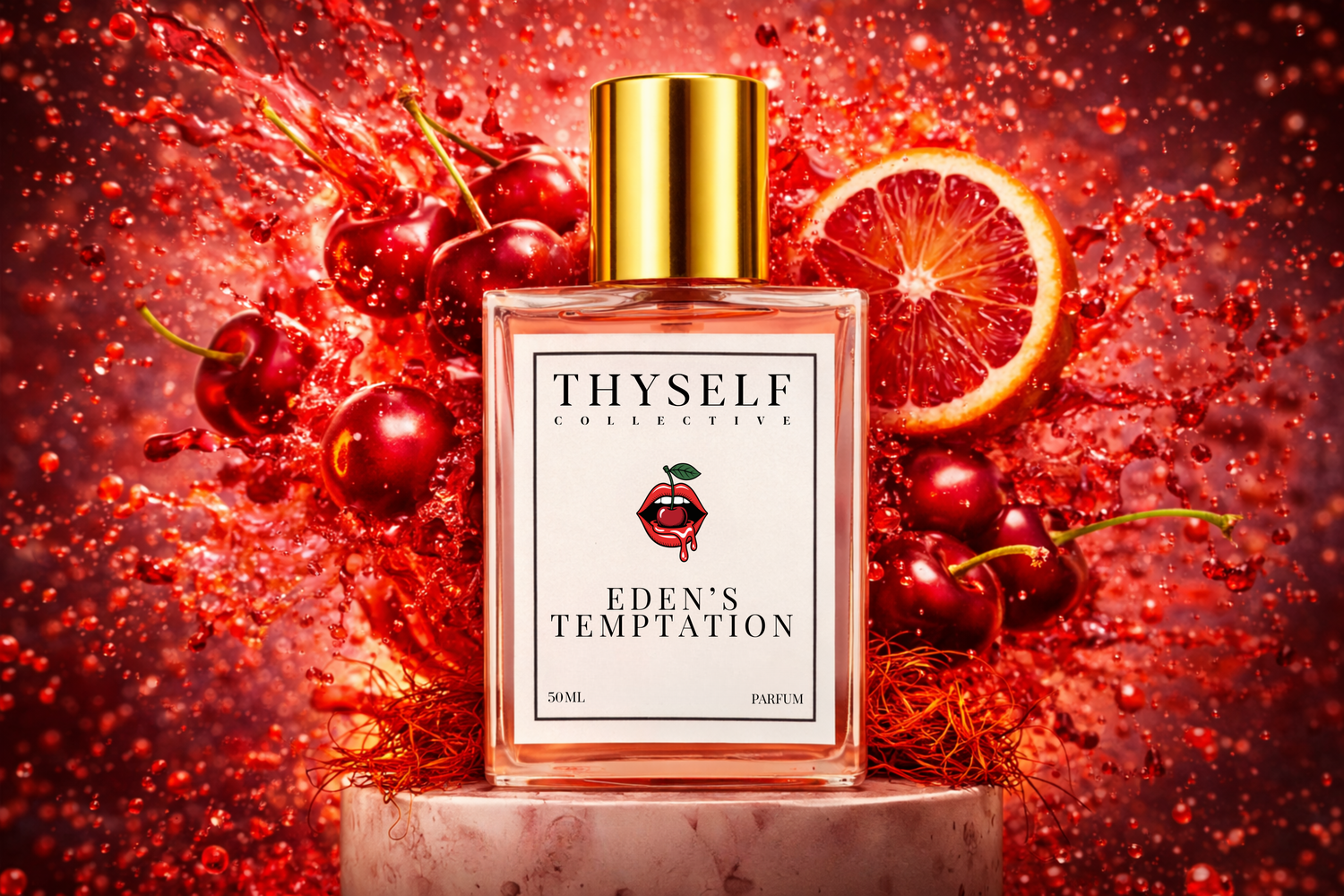 Eden’s Temptation is a fragrance that draws you in from the very first breath. Opening with a rich burst of cherry—ripe, juicy, and dripping with indulgence—it immediately evokes desire. Beneath the surface, a slow, smoldering heat emerges: warm spices and subtle woods that wrap the fruit in a sensual embrace.